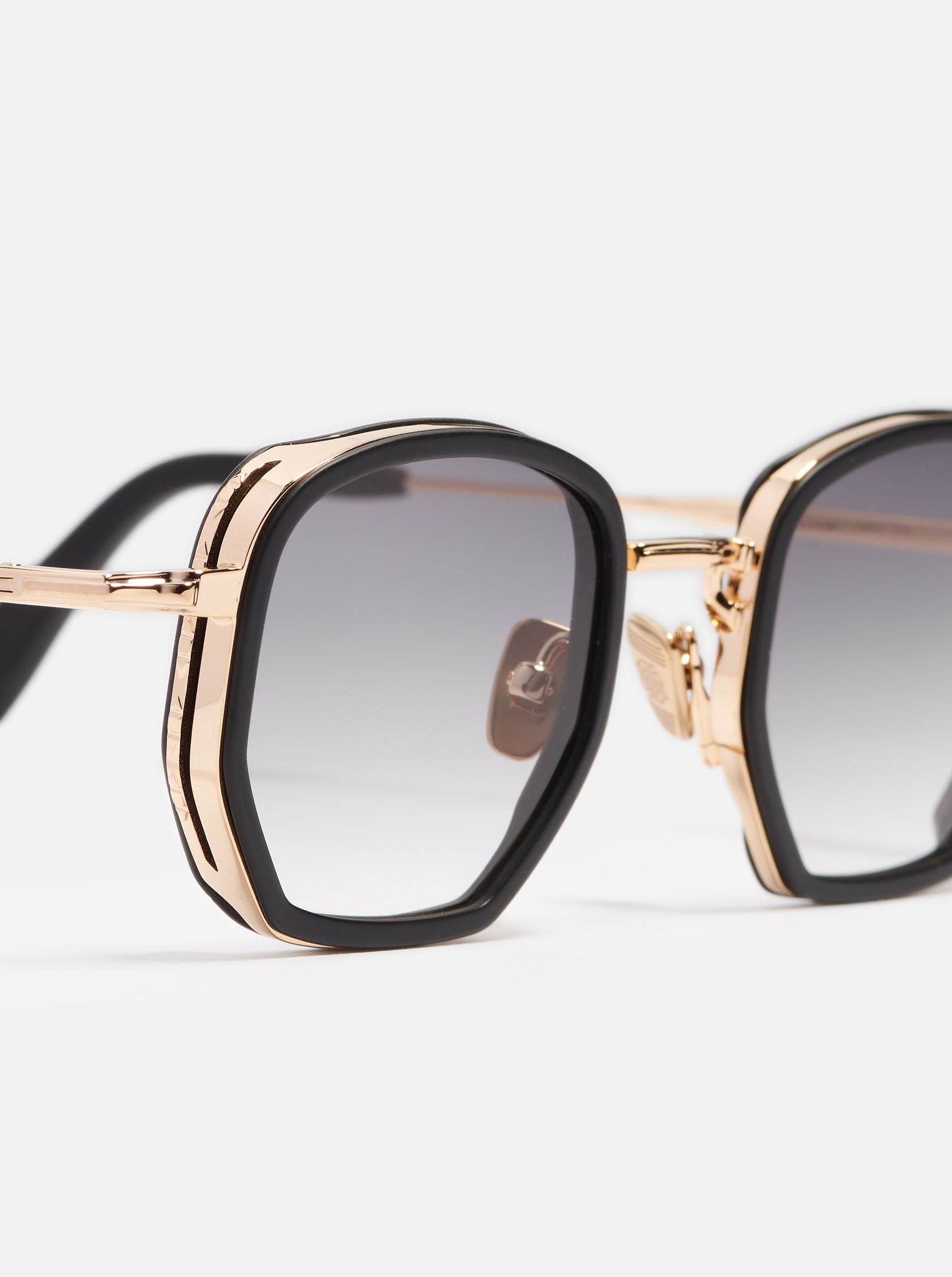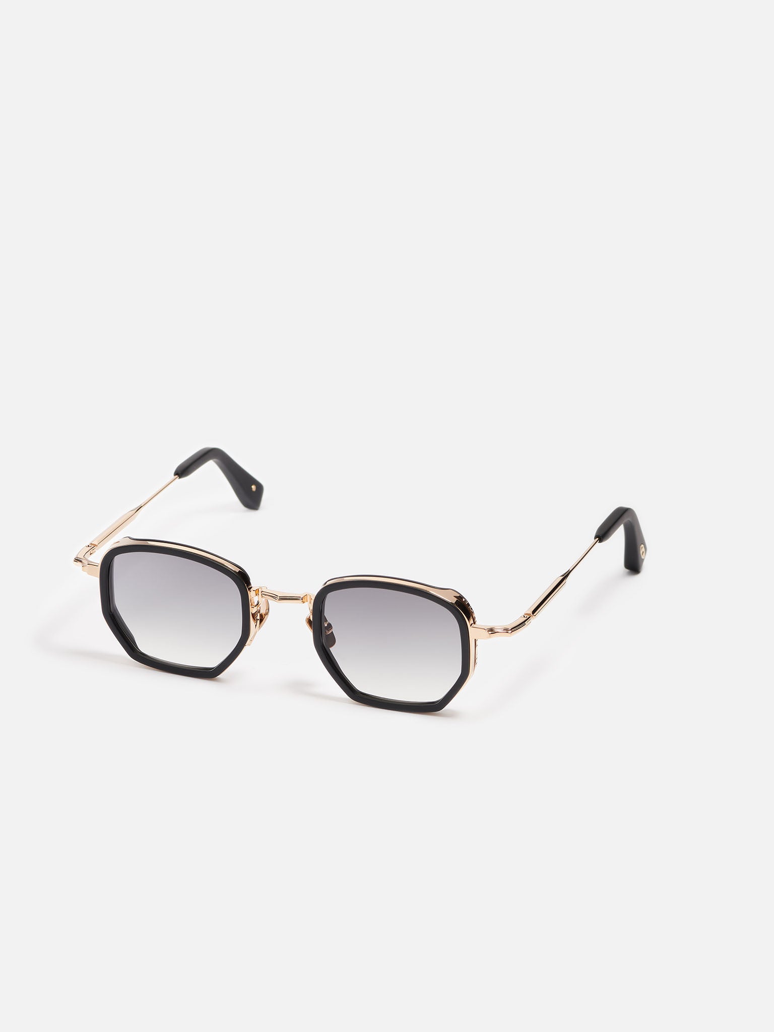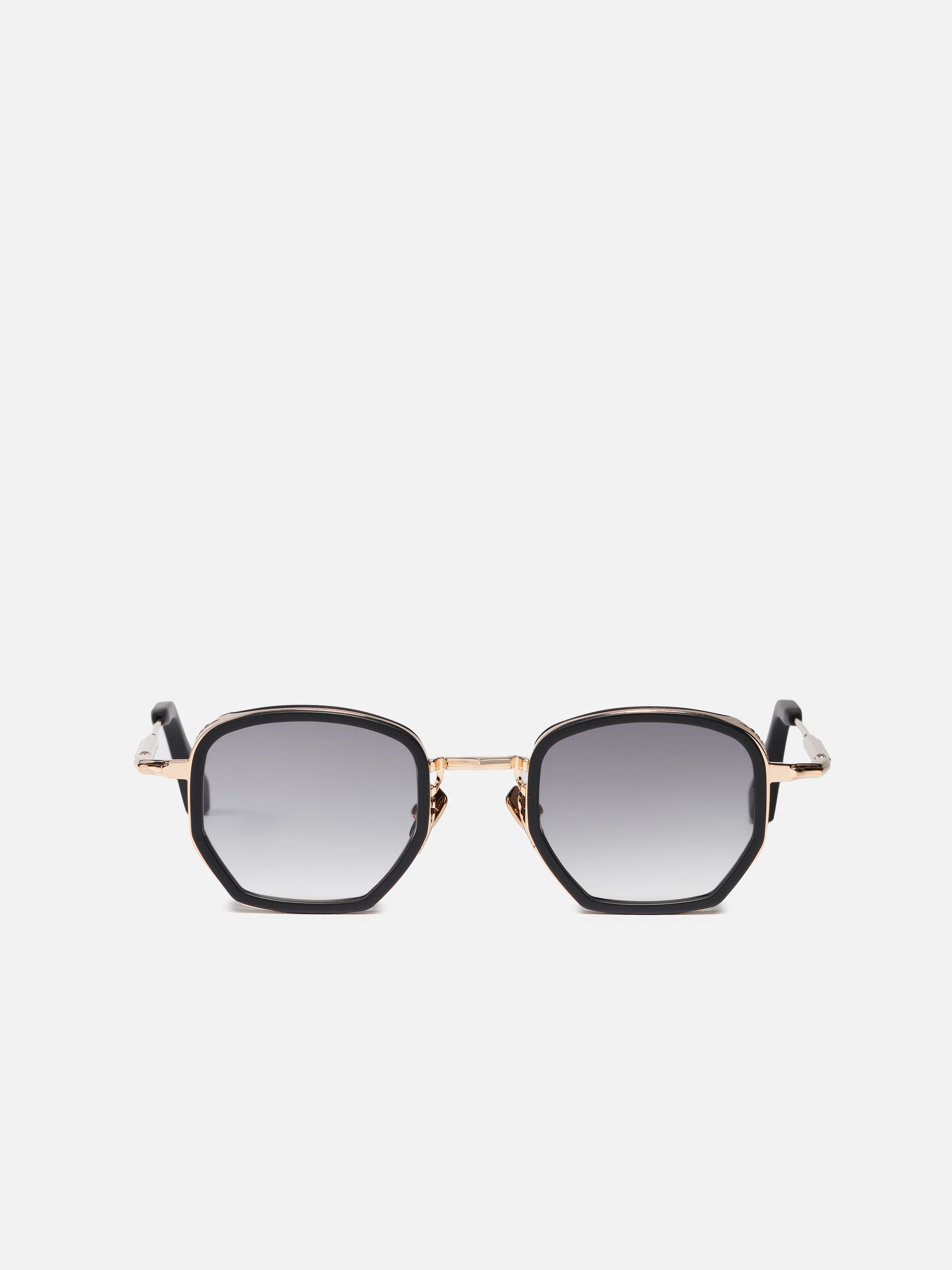 La monture est en acier inoxydable plaqué or vieilli (5 microns, poinçonné à l'intérieur de la branche). Les embouts de branches et le contour des yeux sont en acétate noir infini.