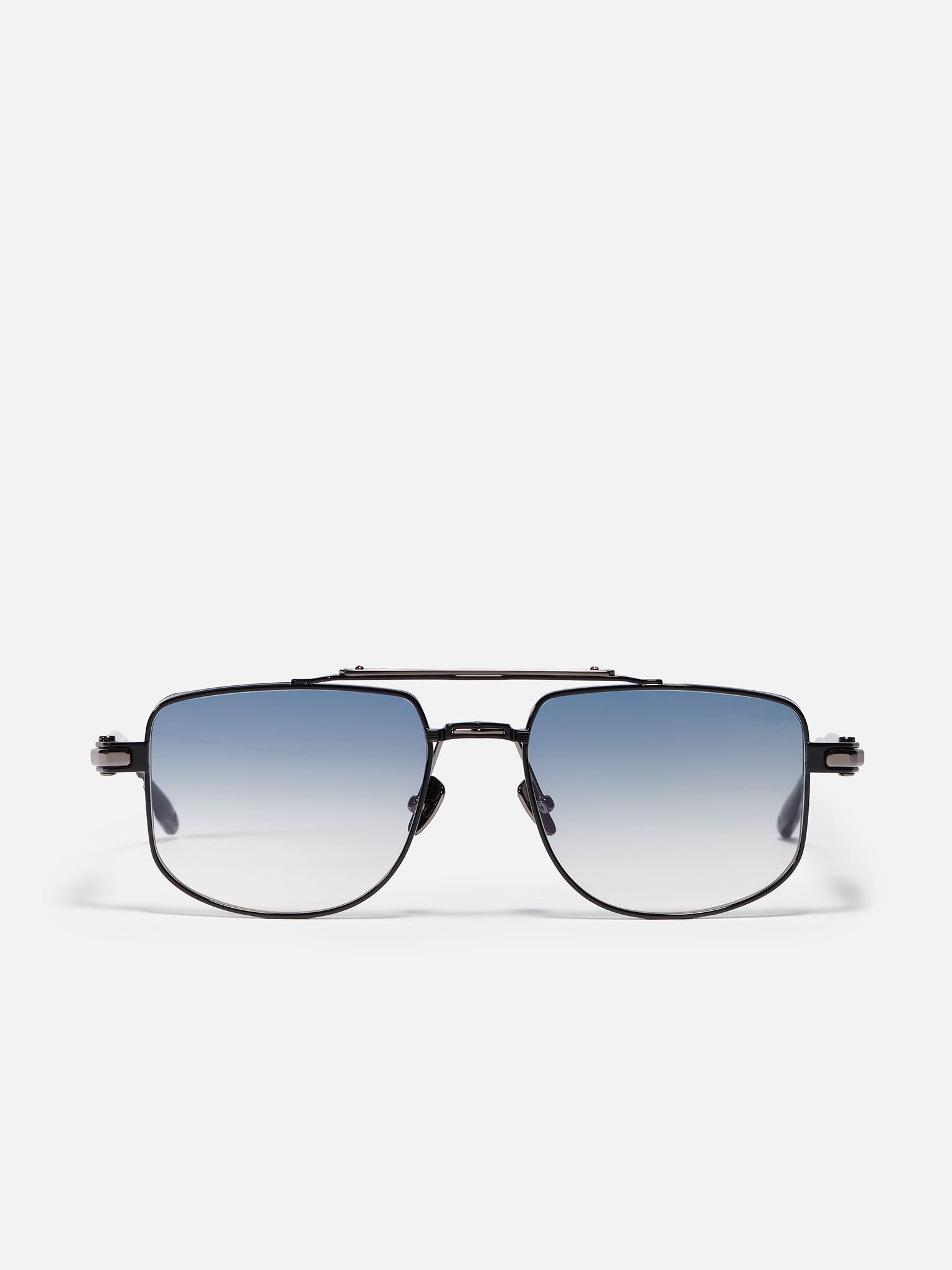 Unisex geometric shaped frame combining a titanium structure with metal details in a refined fusion of materials.