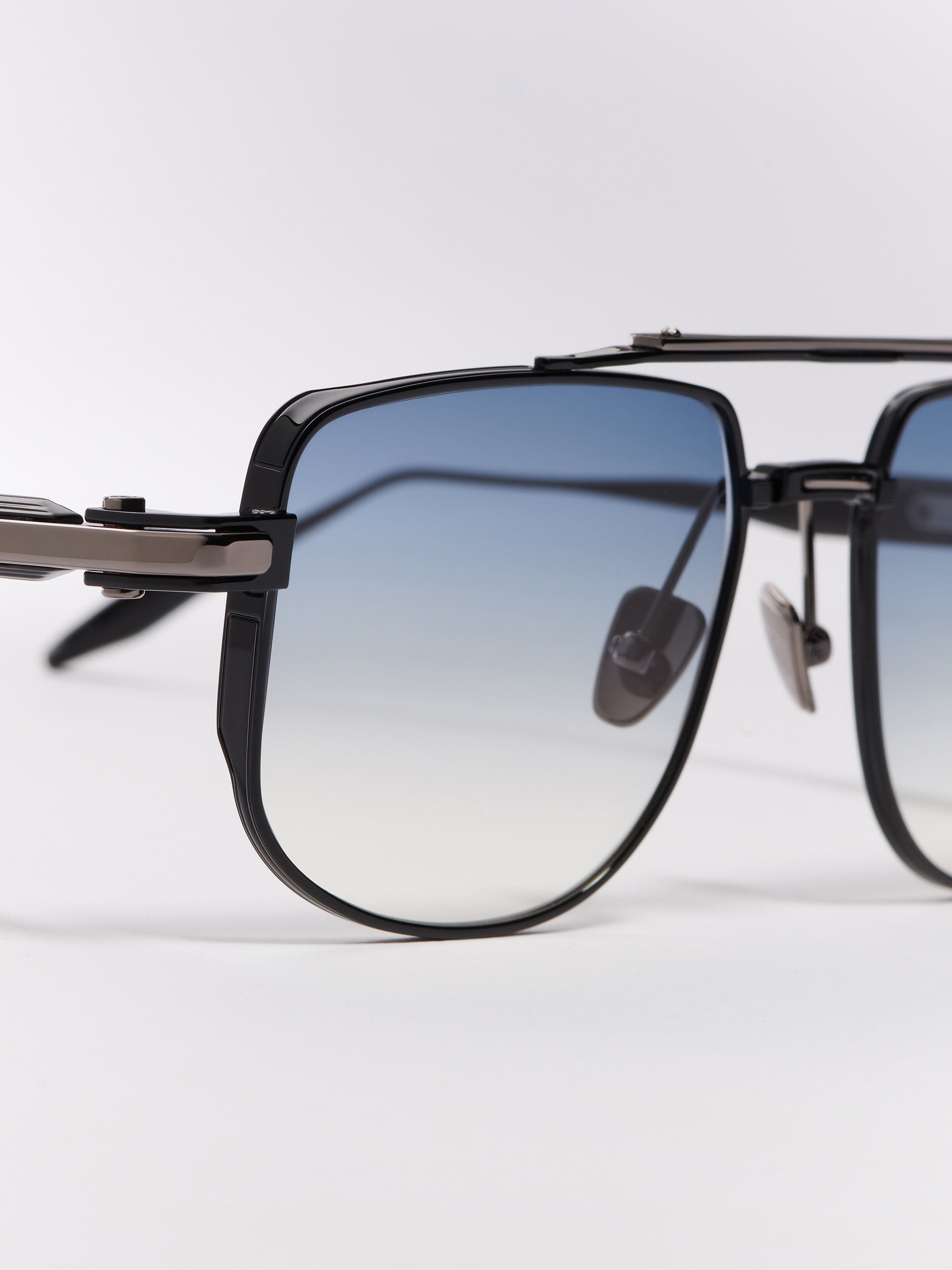 The temples extend seamlessly into sculpted metal end tips, conceived as a natural continuation of the architecture. With subtle variations in thickness and finely striated finishes, the temples highlight the distinctive character of the design.