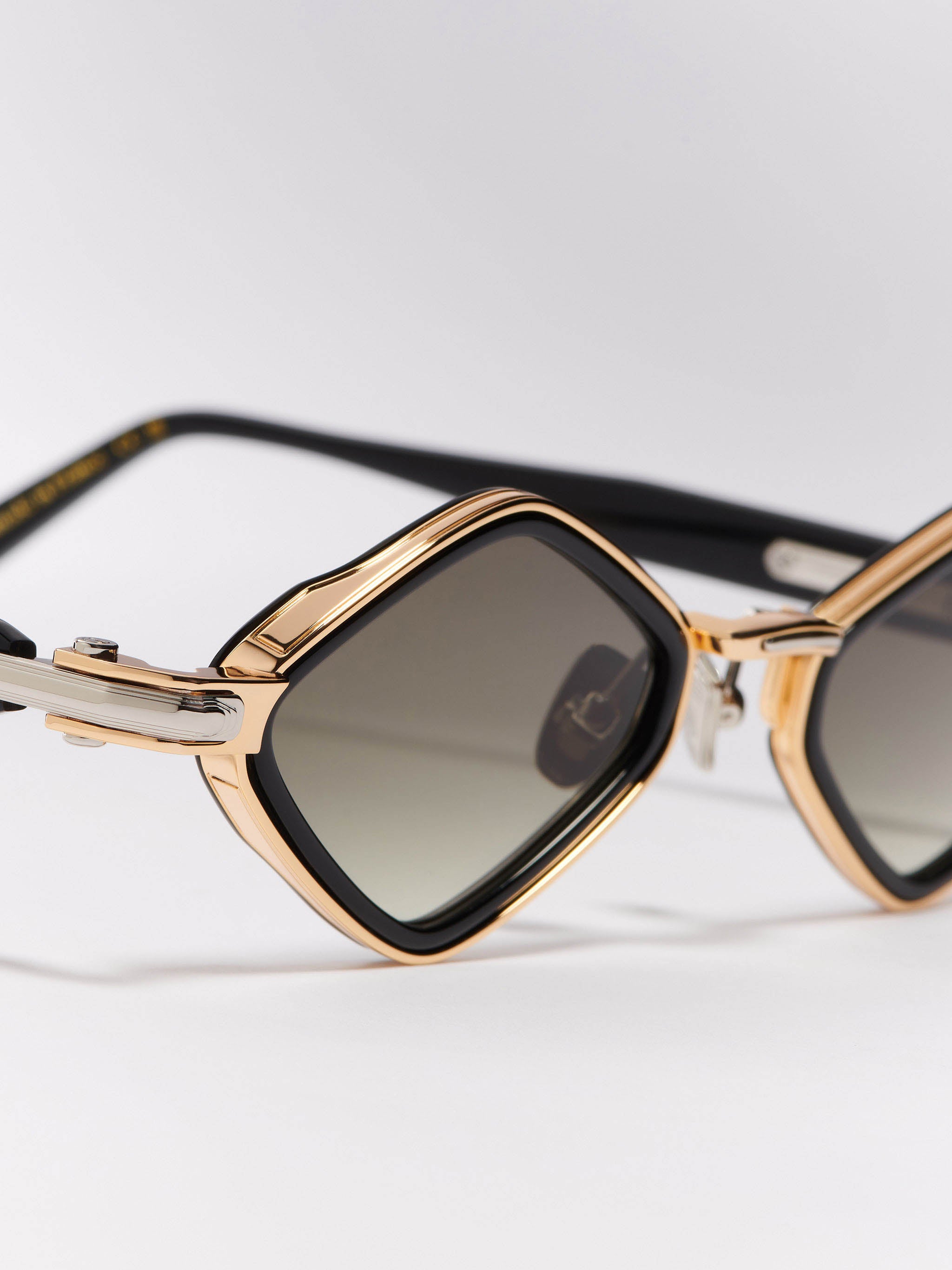 Unisex diamond shaped frame combining a titanium structure with metal details in a refined fusion of materials.