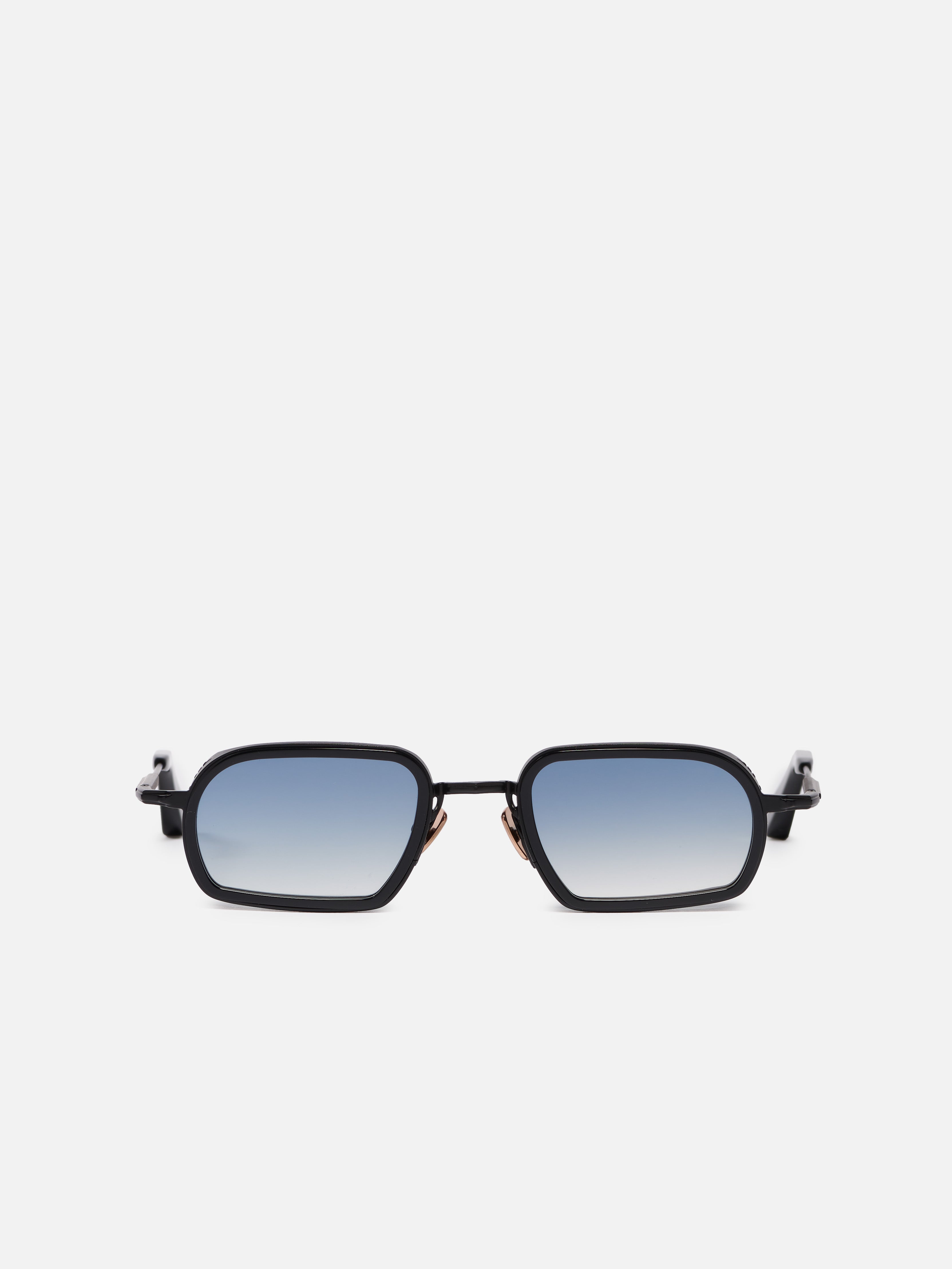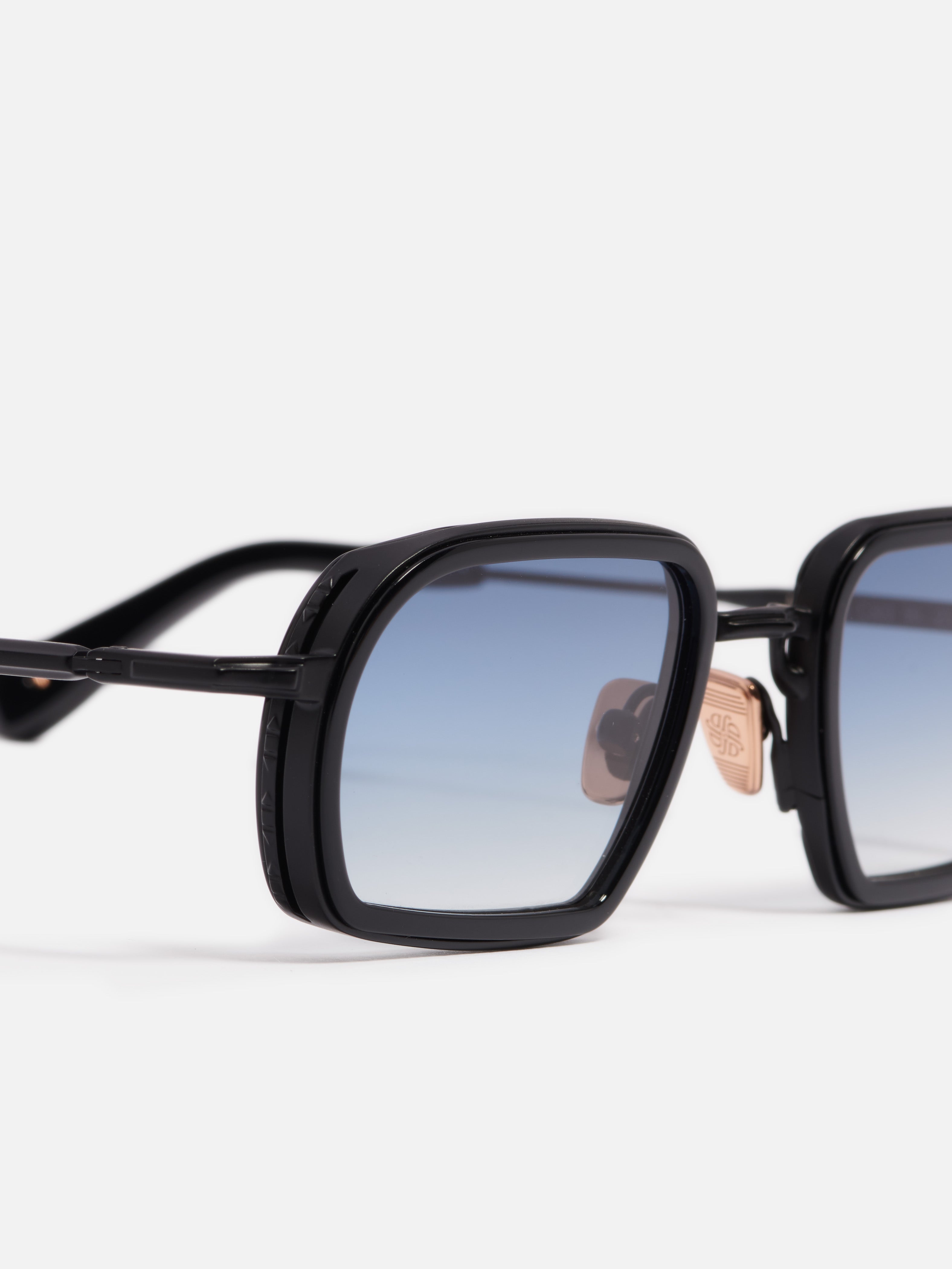 La monture est en acier inoxydable avec une finition carbone. Les embouts de branches et le contour des yeux sont en acétate noir infini.