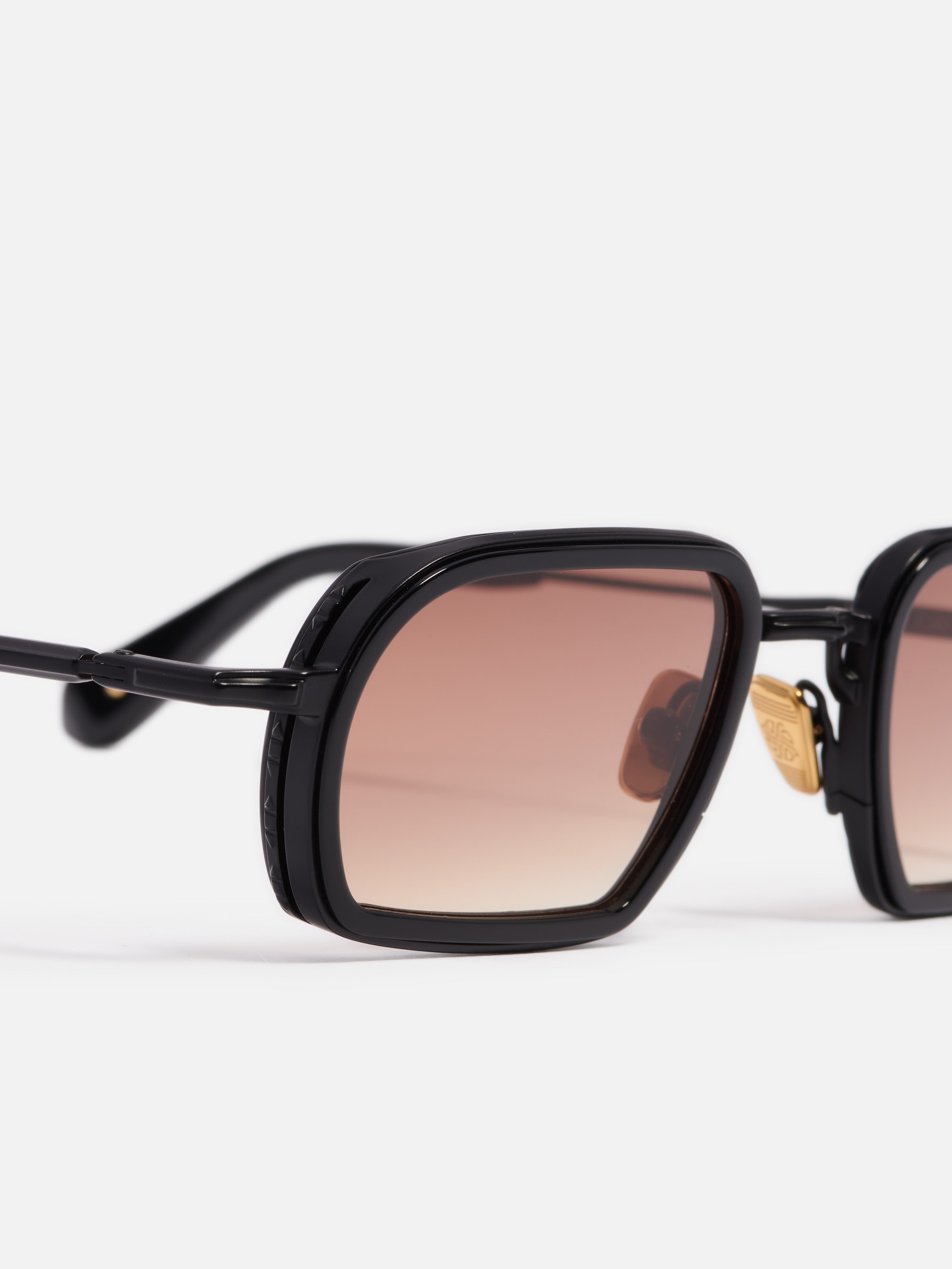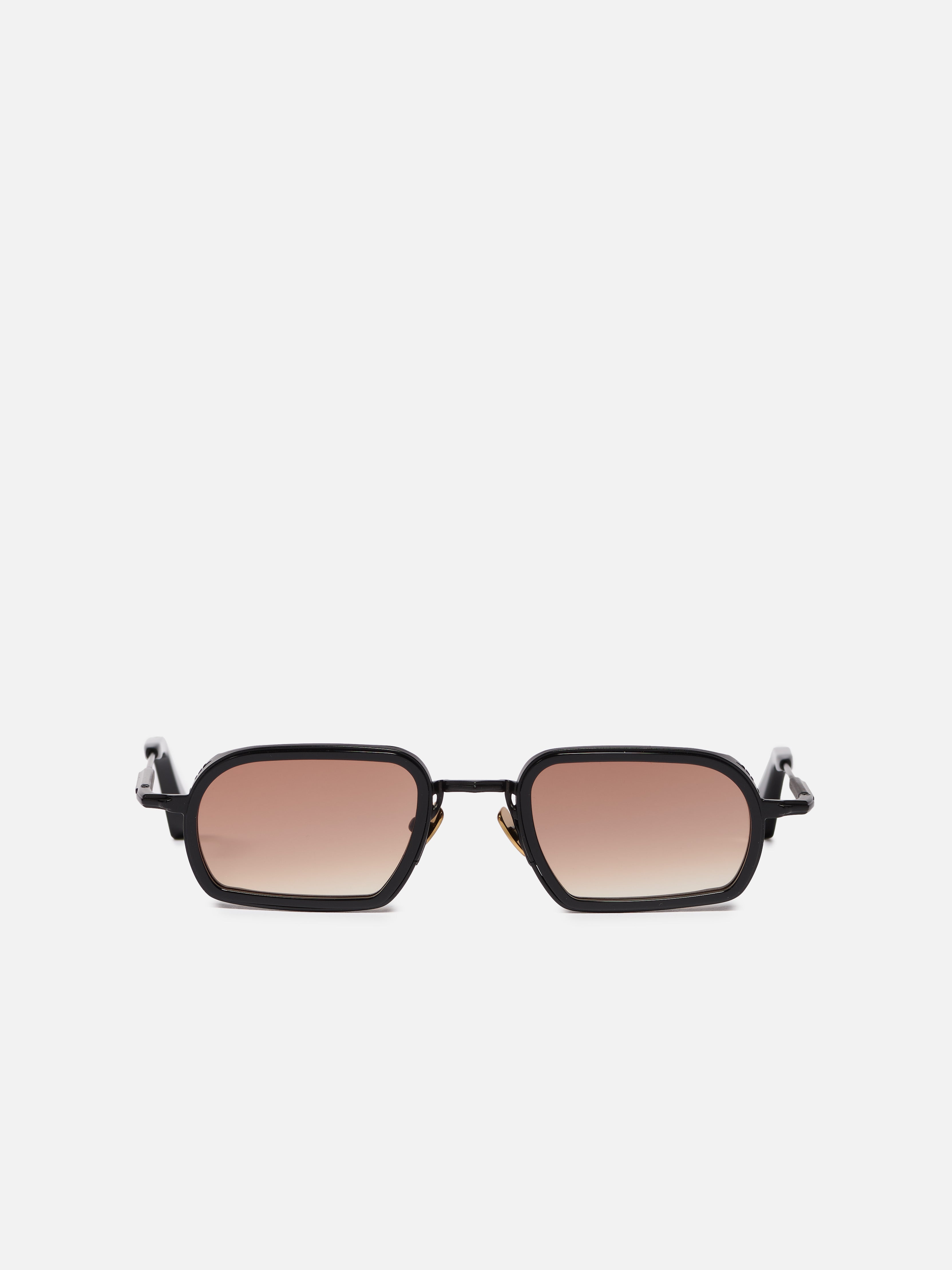 La monture est en acier inoxydable avec une finition carbone. Les embouts de branches et le contour des yeux sont en acétate noir infini.
