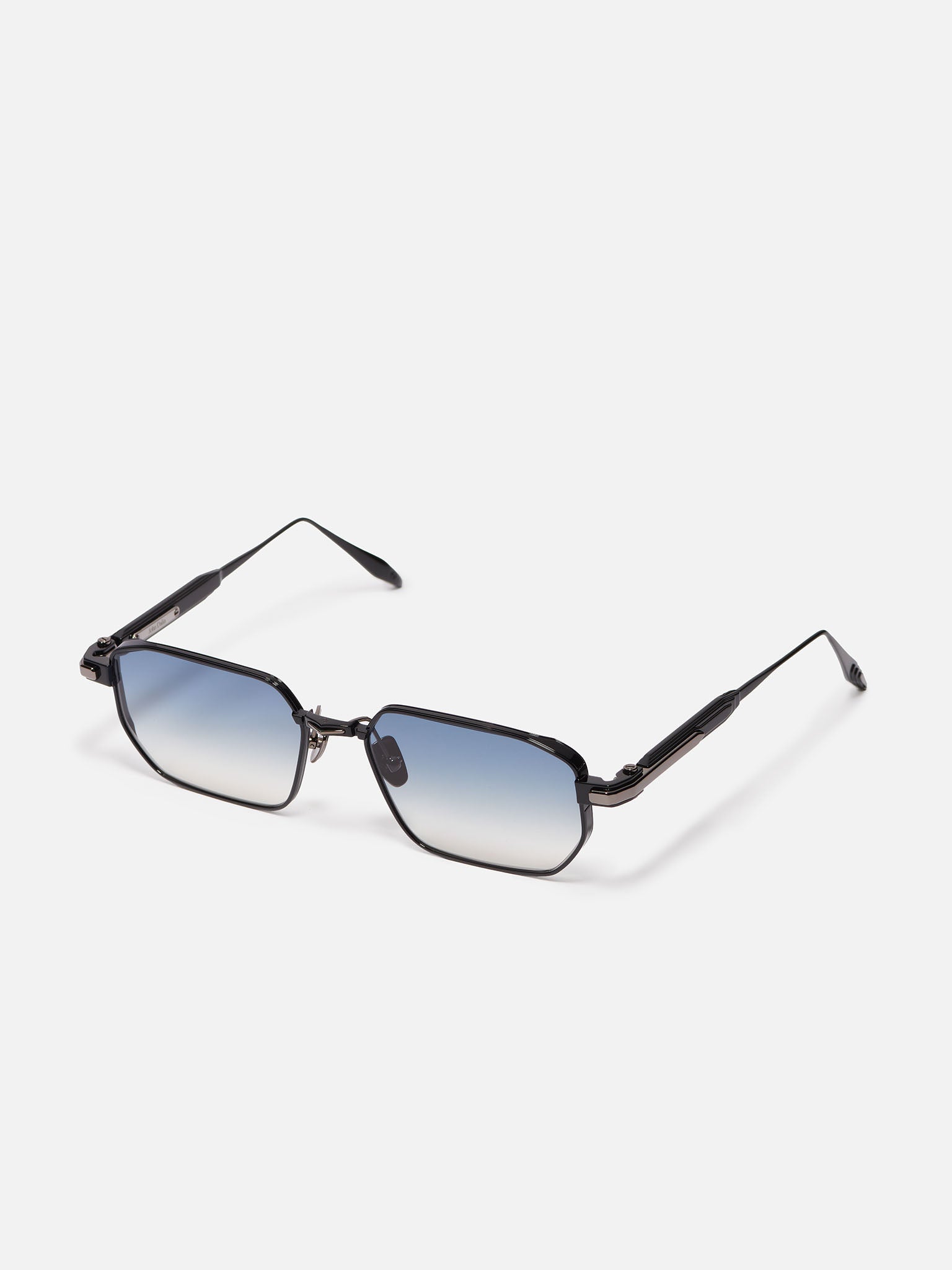 Unisex rectangular shaped frame combining a titanium structure with metal details in a refined fusion of materials.