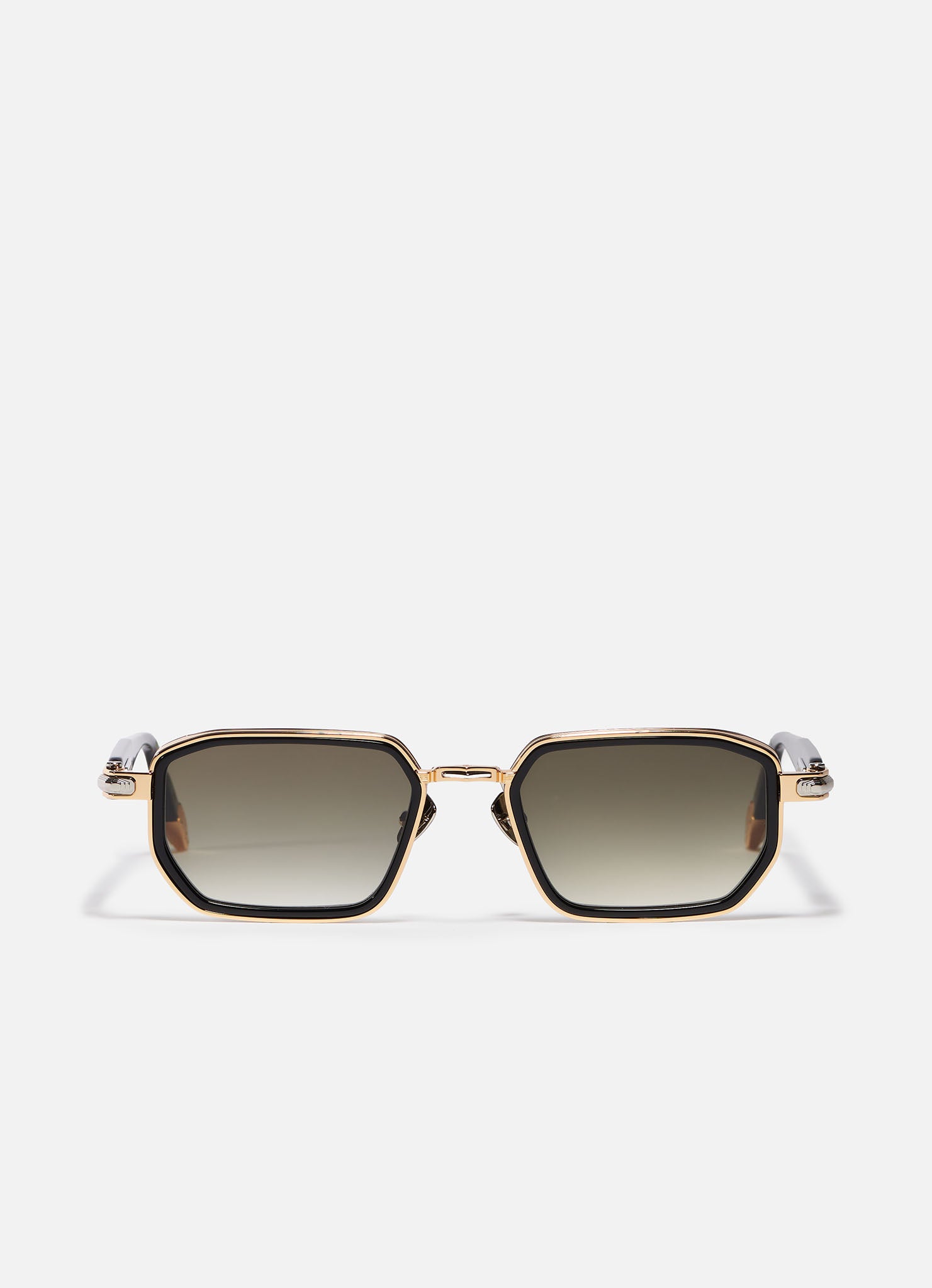 Yellow gold titanium corewire structure with platinum plated decorative elements (3µ). The temple tips and rims are crafted from Shiny black.