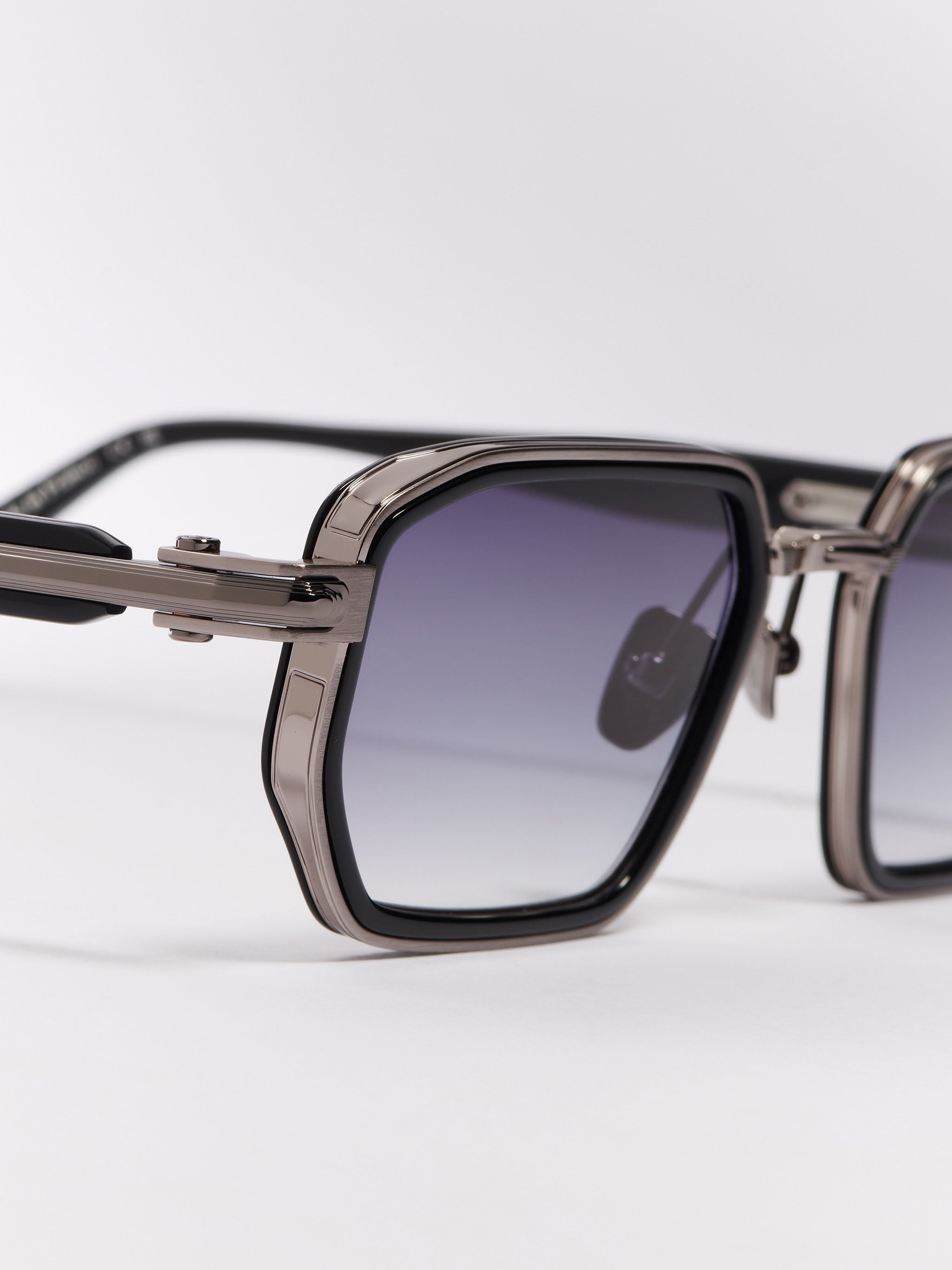 The acetate temples extend seamlessly into sculpted metal end tips, conceived as a natural continuation of the architecture. With subtle variations in thickness and finely striated finishes, the temples highlight the distinctive character of the design.