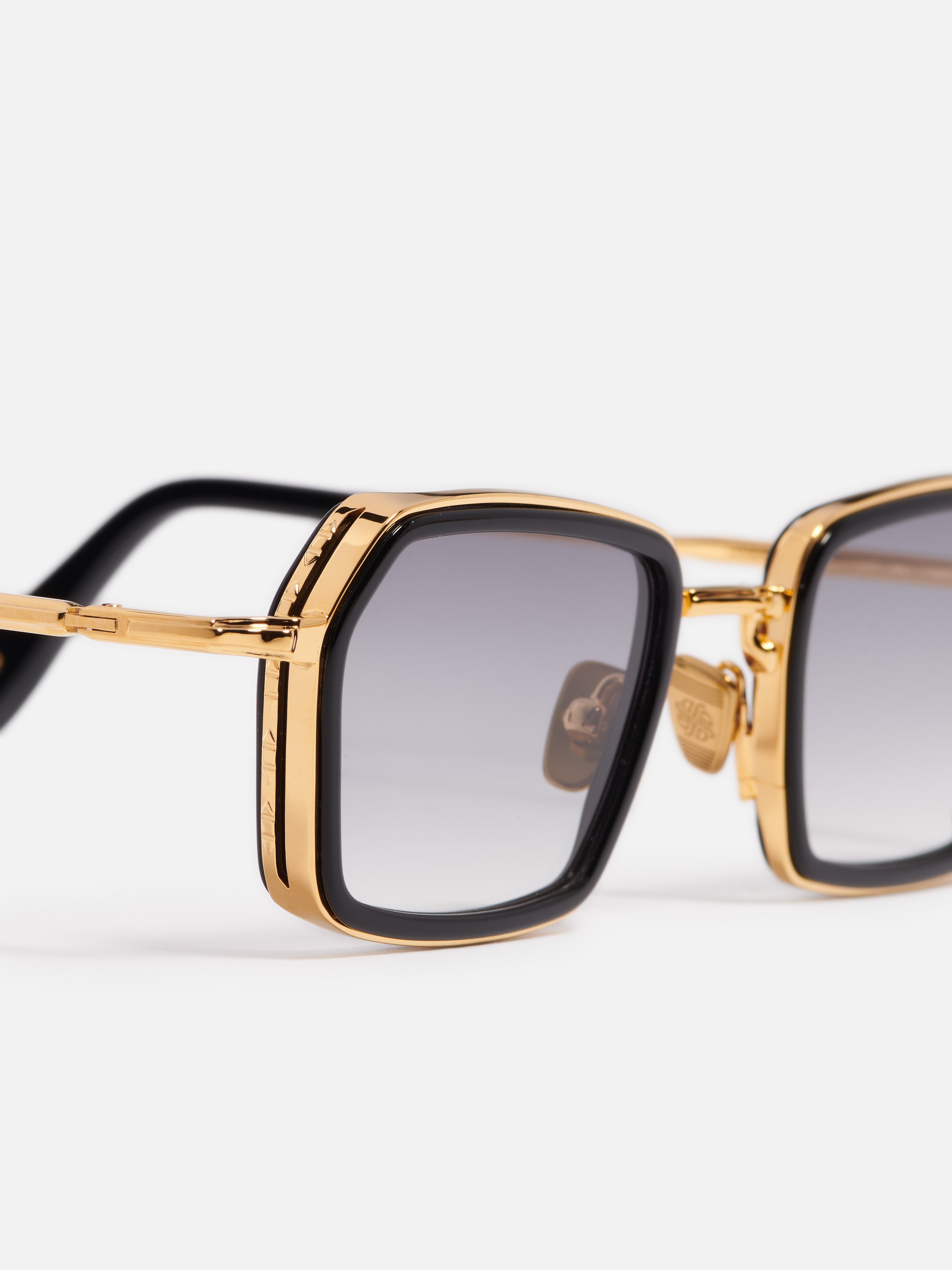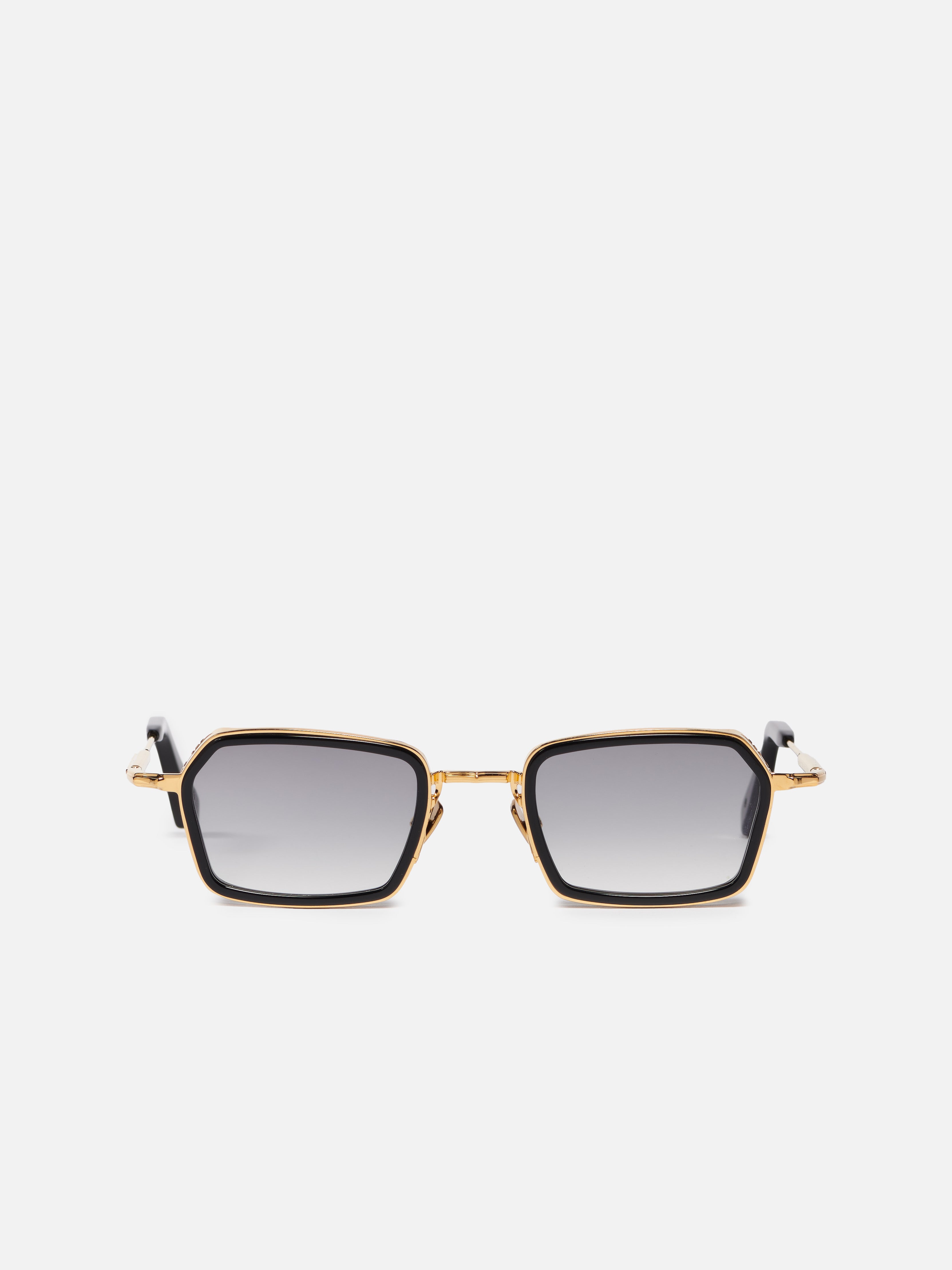 La monture est en acier inoxydable plaqué or jaune (5 microns, poinçonné à l'intérieur de la branche). Les embouts de branches et le contour des yeux sont en acétate noir infini.
