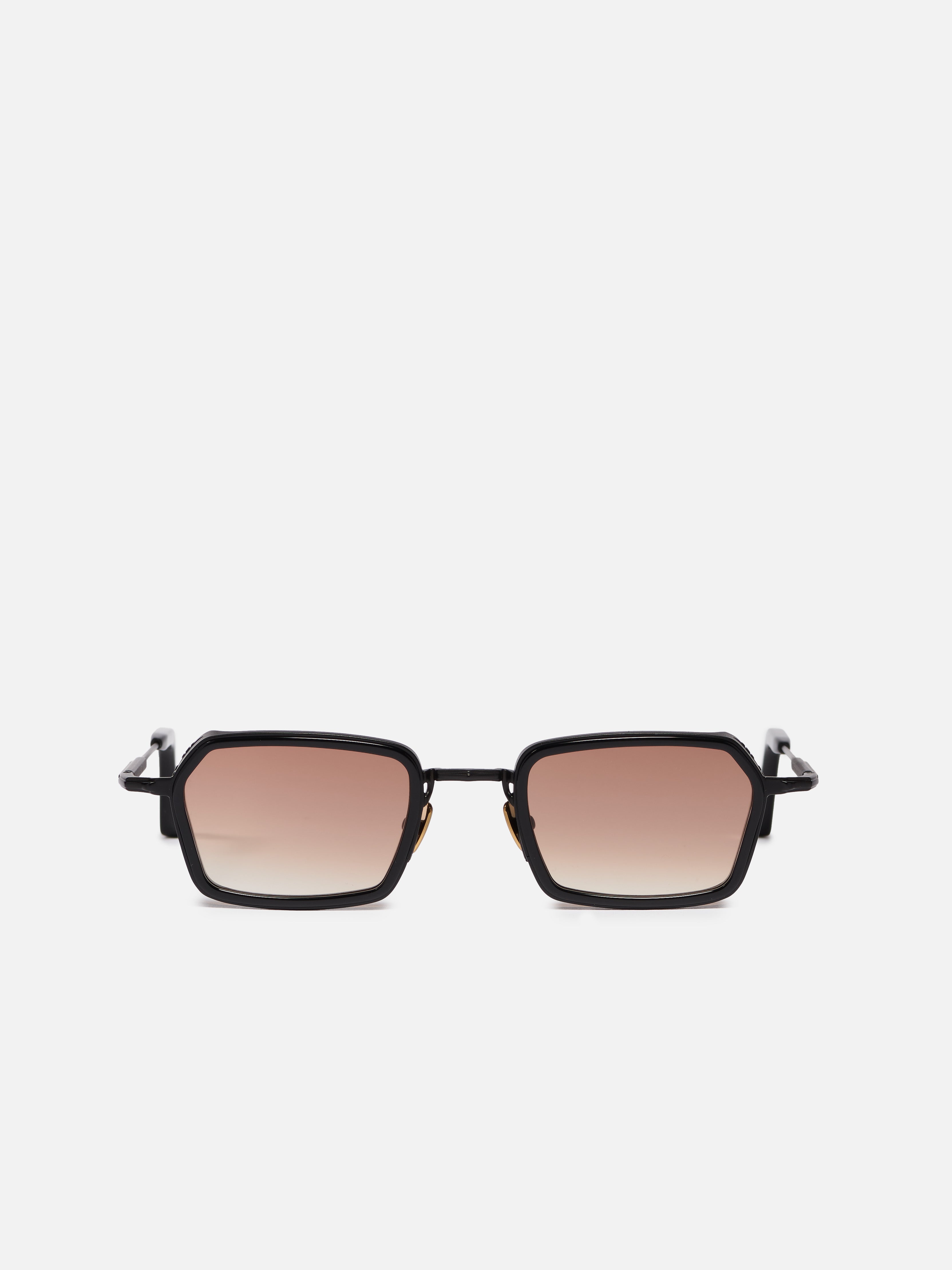 La monture est en acier inoxydable avec une finition carbone. Les embouts de branches et le contour des yeux sont en acétate noir infini.
