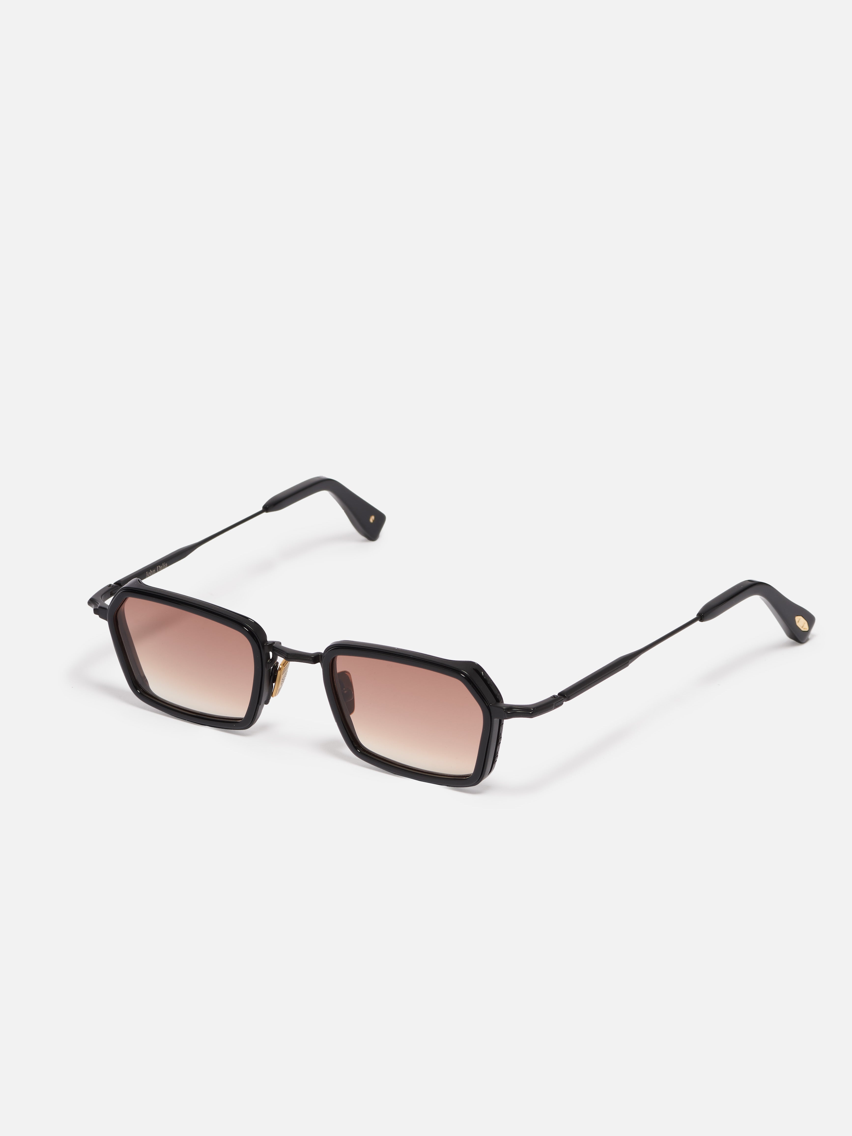 Monture rectangulaire masculine alliant métal et acétate. Elle présente un pont et des embouts renforcés. Elle est dotée de plaquettes de nez en titane et d'embouts de branches en acétate estampés de la signature John Dalia.