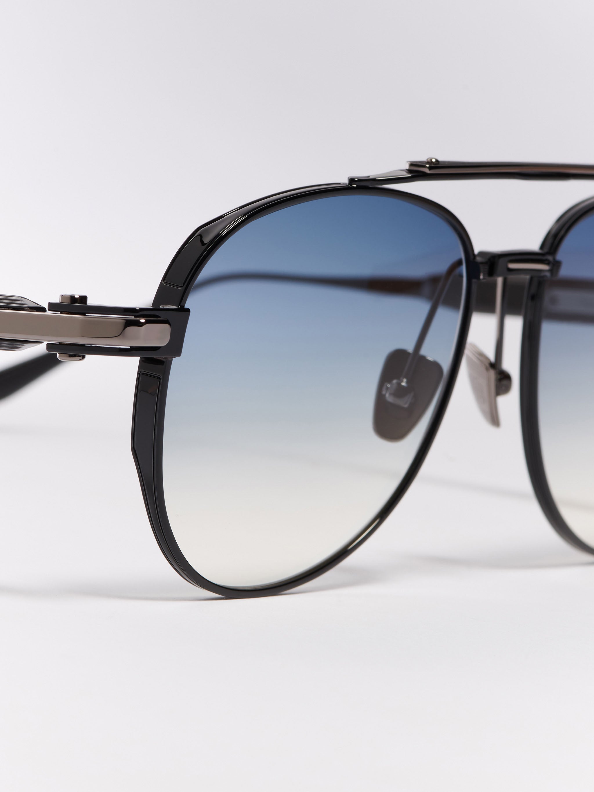 Unisex aviator shaped frame combining a titanium structure with metal details in a refined fusion of materials.