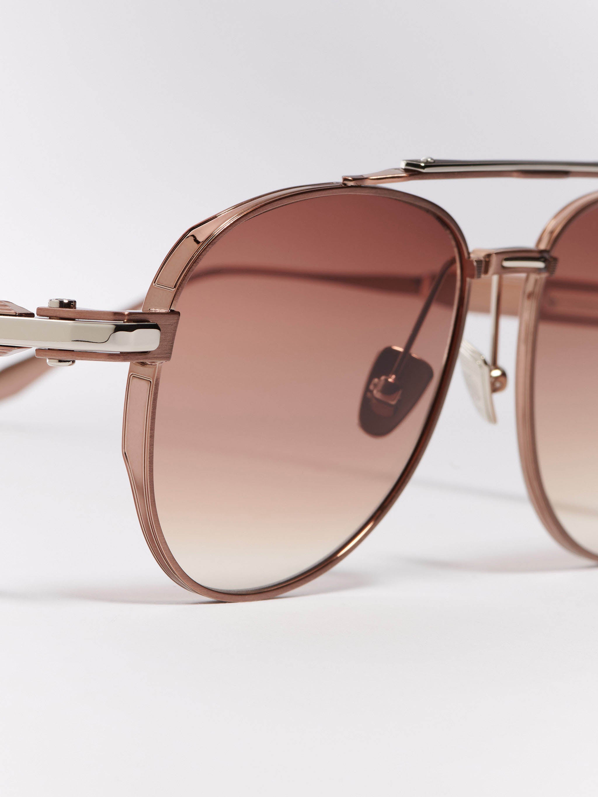 Unisex aviator shaped frame combining a titanium structure with metal details in a refined fusion of materials.