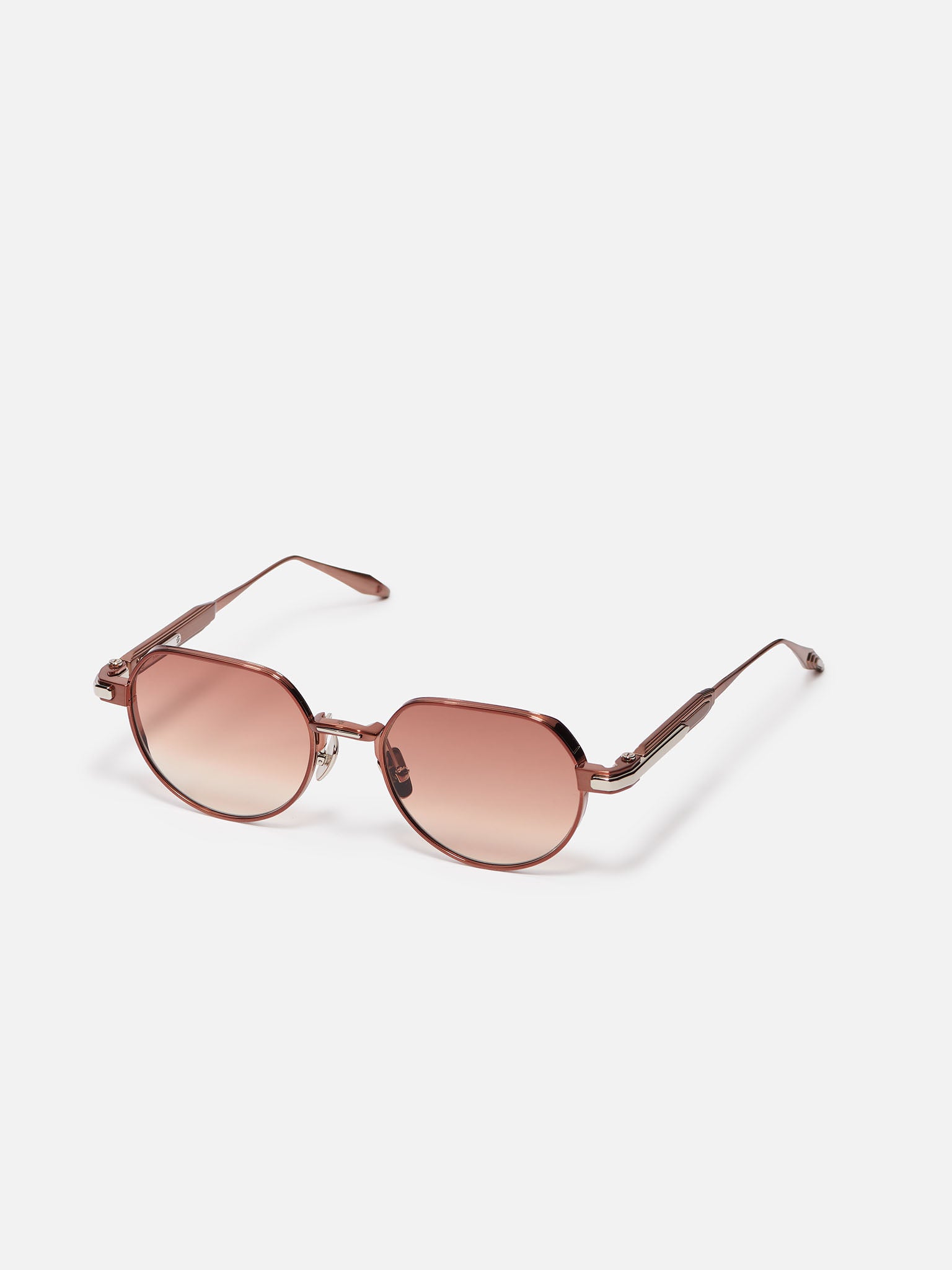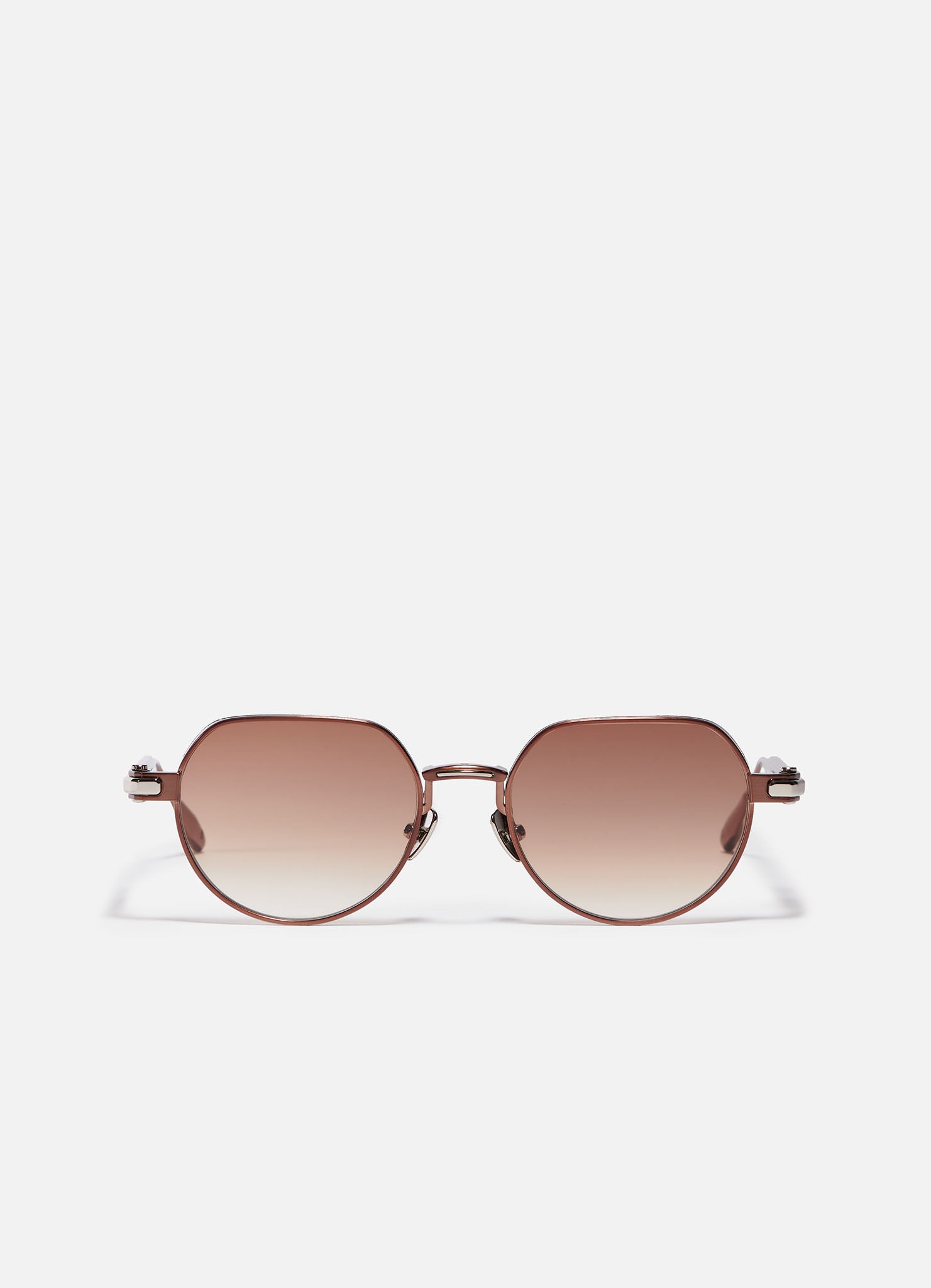 Unisex round shaped frame combining a titanium structure with metal details in a refined fusion of materials.