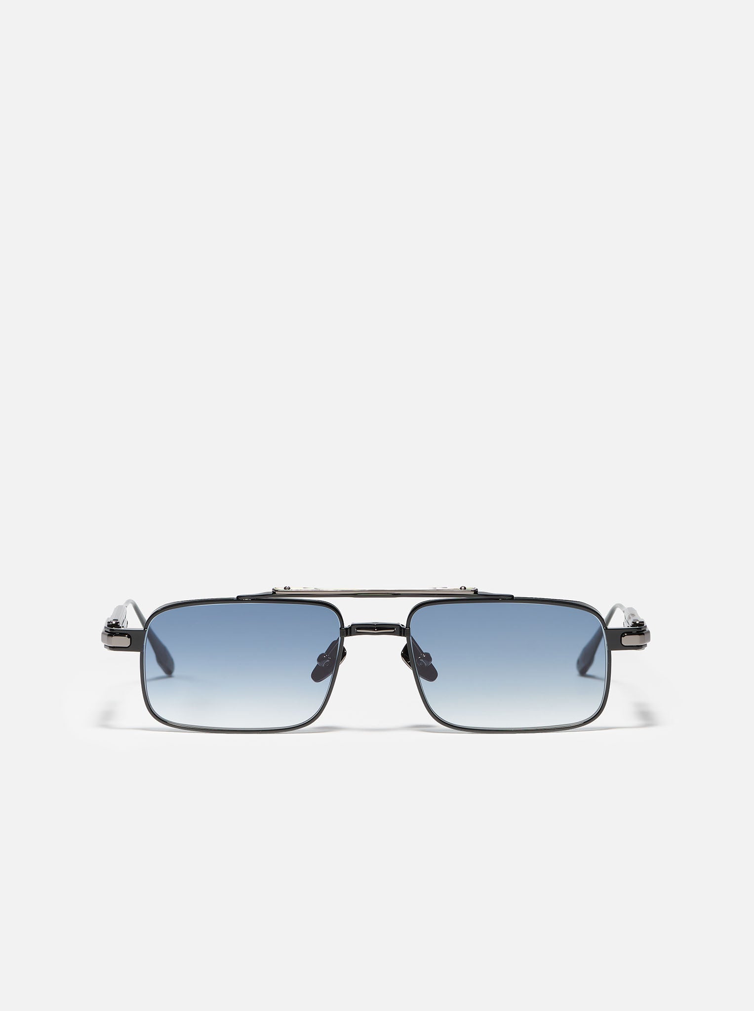 Unisex rectangular shaped frame combining a titanium structure with metal details in a refined fusion of materials.