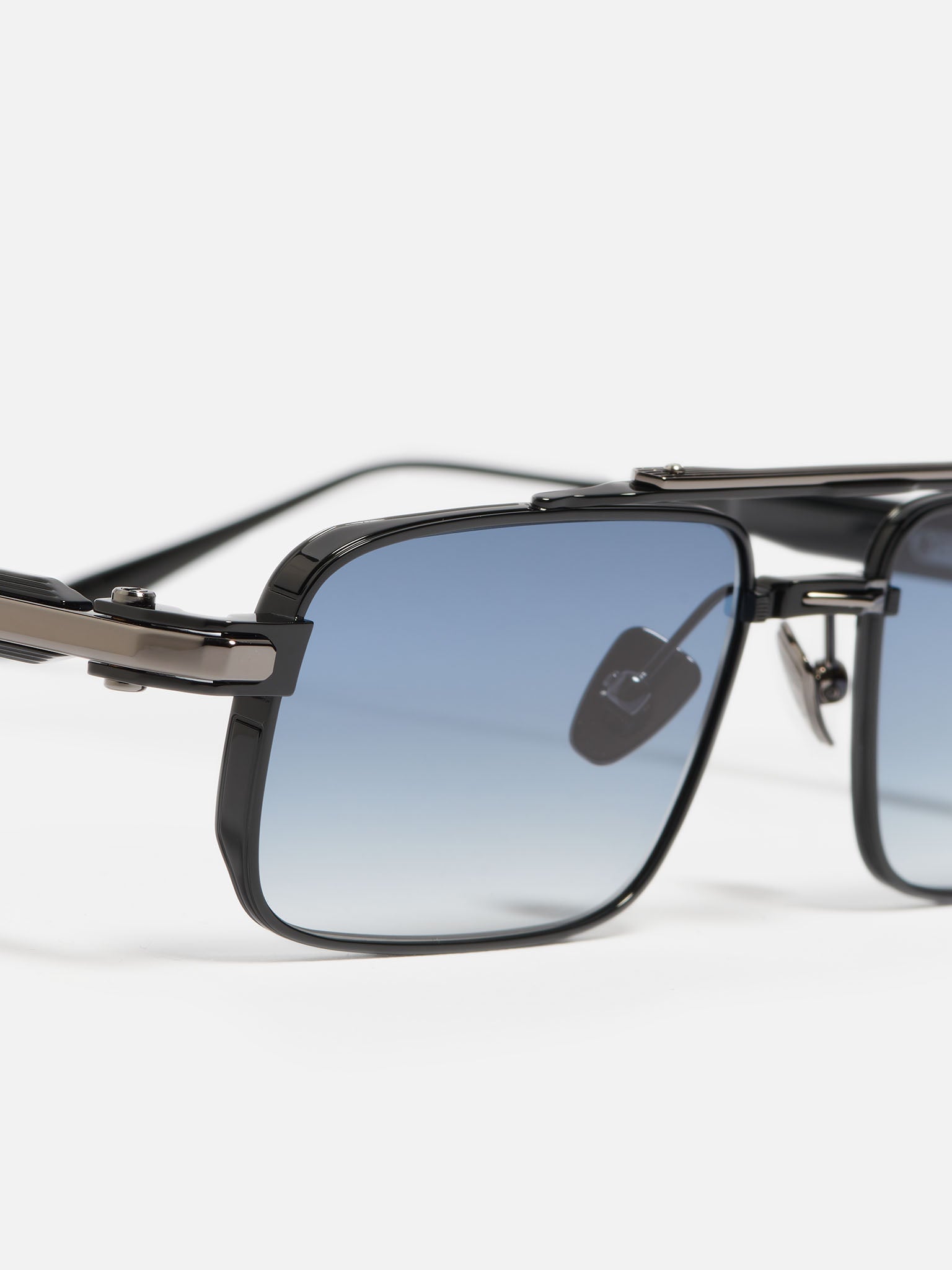 The temples extend seamlessly into sculpted metal end tips, conceived as a natural continuation of the architecture. With subtle variations in thickness and finely striated finishes, the temples highlight the distinctive character of the design.