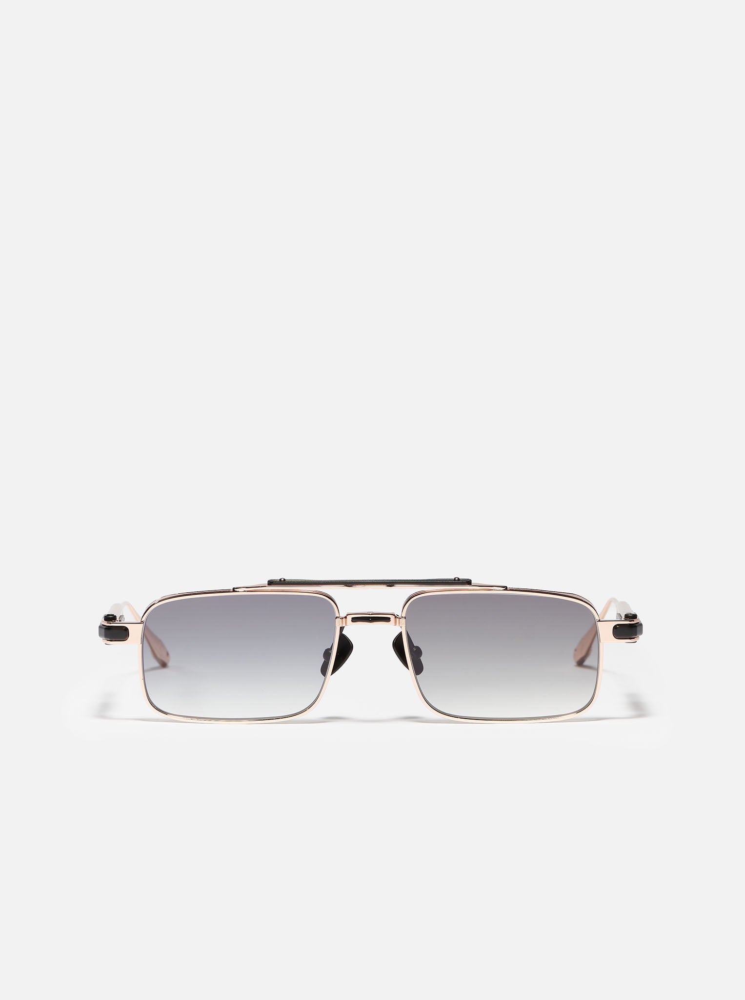 Unisex rectangular shaped frame combining a titanium structure with metal details in a refined fusion of materials.
