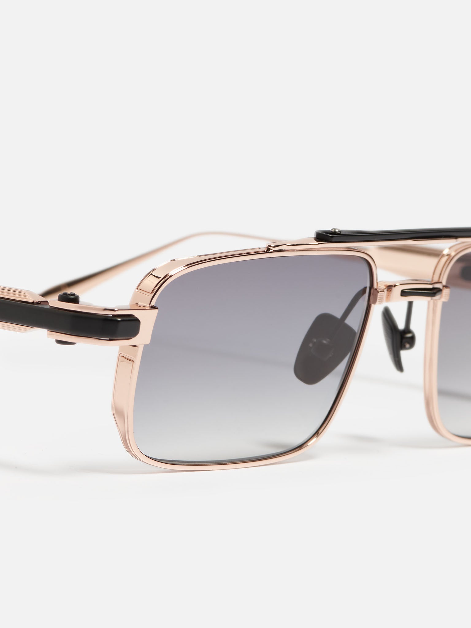 The temples extend seamlessly into sculpted metal end tips, conceived as a natural continuation of the architecture. With subtle variations in thickness and finely striated finishes, the temples highlight the distinctive character of the design.