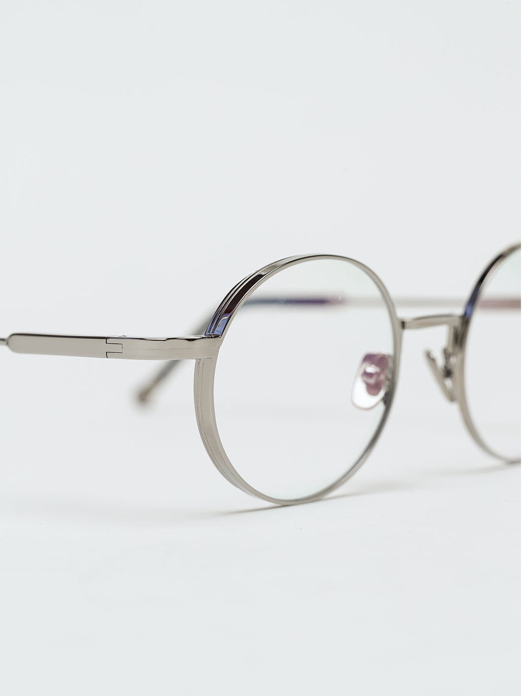 A unisex octogonal shape with 4mm streak-engraved metal. The frame is enlivened by our new signature temples featuring John Dalia’s engraved end pieces. Infinite Black acetate on temples & Ruthenium plated alloy frame. Demo CR39 lenses Reference O-520. Case and cleaning cloth are included.