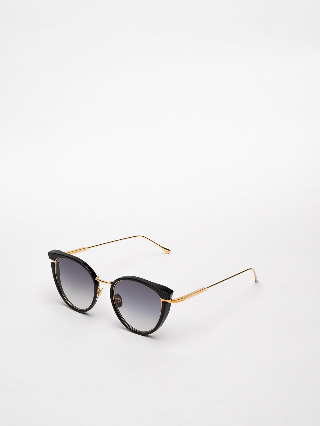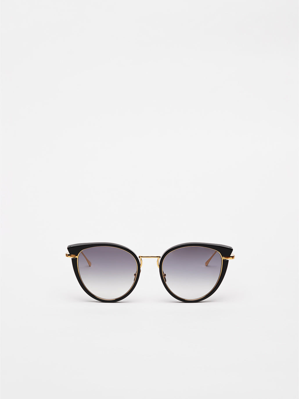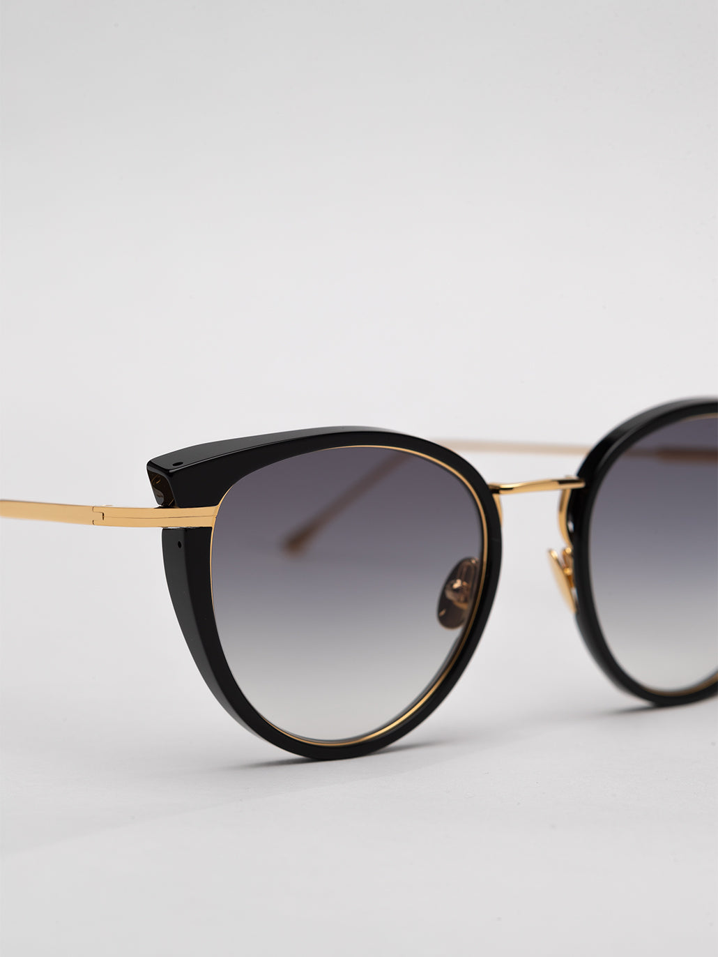 The metal corewire is made of stainless steel frame with yellow gold plating (5µ, with a jeweler’s stamp inside the temple). Temple tips and eye rims in infinite black acetate.