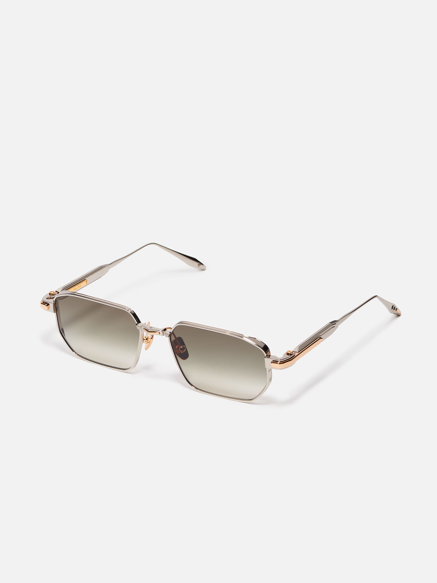Unisex rectangular shaped frame combining a titanium structure with metal details in a refined fusion of materials.