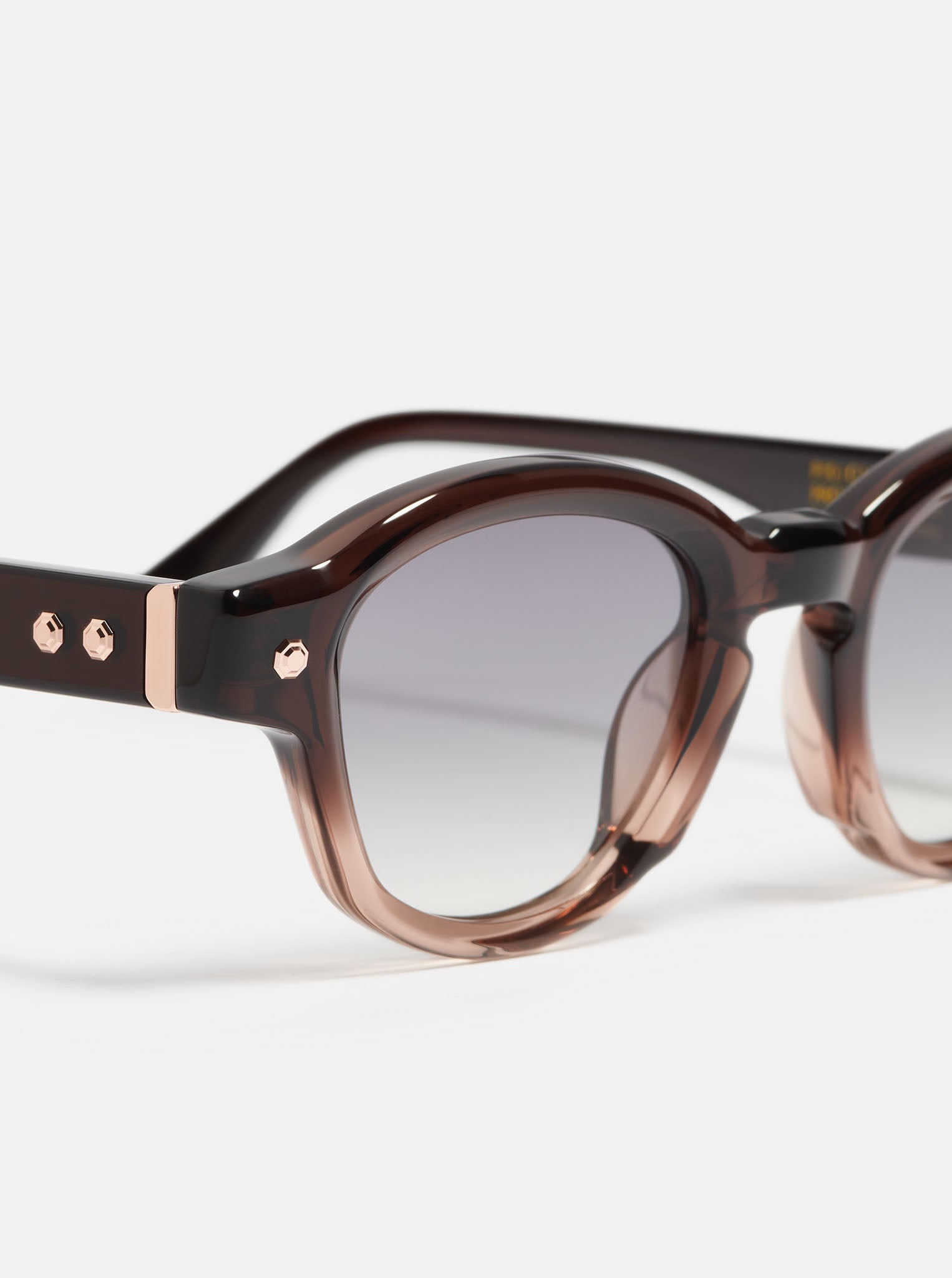 Project 10 is a unisex frame crafted from an 8mm acetate sheet. It features a pantos shape, a signature John Dalia armature and hinges, as well as decorative pins.